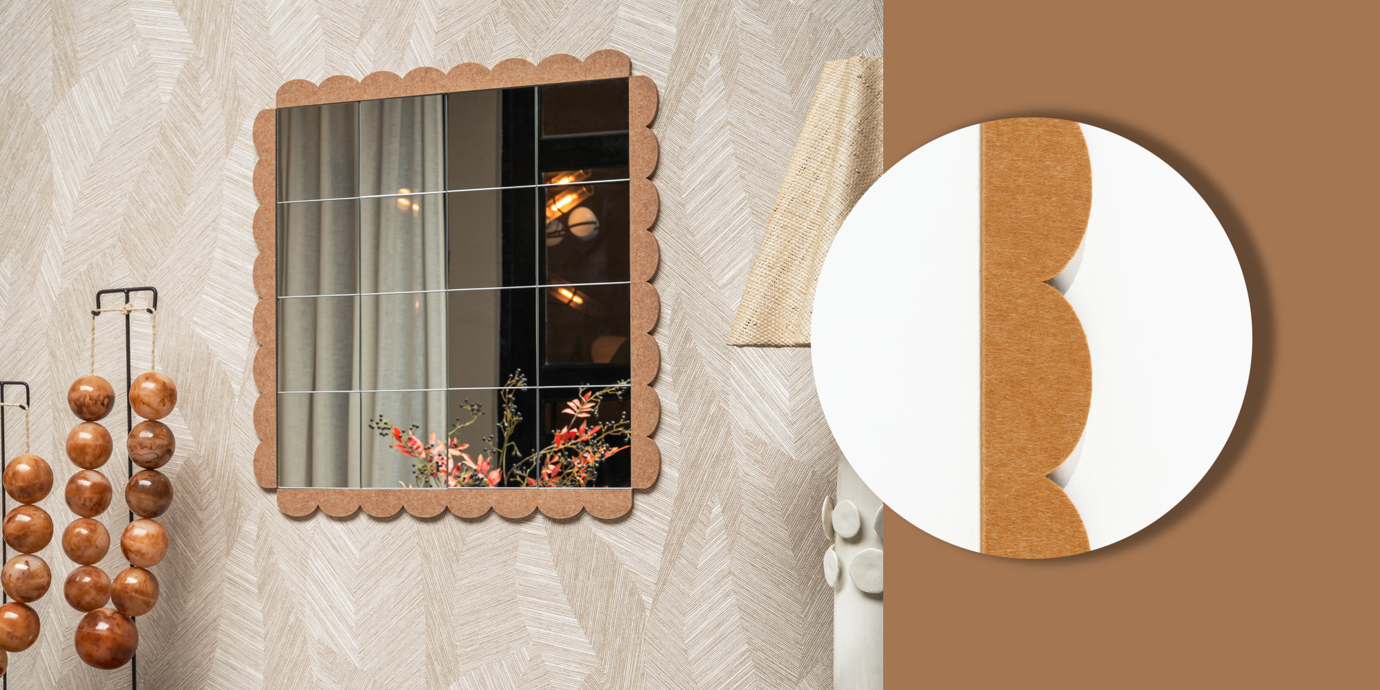 Geen gereedschap nodig: je plakt de zelfklevende ‘Big Scallop’ zo op je kozijn, om een nis of langs een tafelrand. In een handomdraai geef je je ruimte een verrassend nieuw accent.